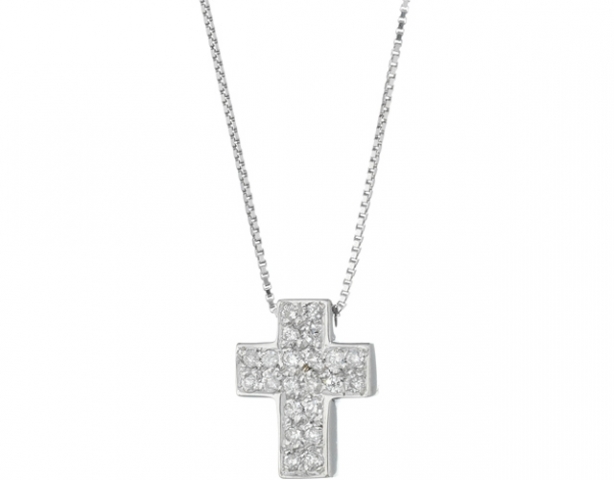 Catenina con Croce scatolata firmata Diamonds Luxury in oro bianco 18kt e Diamanti taglio brillante. La catenina è la classica veneziana, detta anche quadratina. Un oggetto di grande eleganza, un classico intramontabile che non può mancare ad una donna. Corredato di astuccio, shopper e soprattutto garanzia del gioiello e dei brillanti certificati Diamonds Luxury, che garantisce le caratteristiche dell'oggetto descritto, la qualità del materiale, la lavorazione e l'originalità della provenienza. Inoltre è un documento che accerta la legittimità del possesso. Un gioiello Made In Italy offerto al miglior prezzo sul mercato.