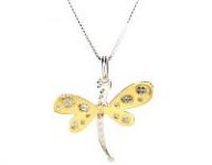 Catenina girocollo con ciondolo Libellula in oro bianco e giallo 18kt