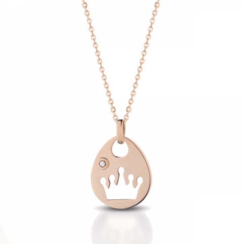 Catenina con ciondolo traforato corona Melissa Jewels in oro 18kt e diamante. E' possibile richiedere anche il ciondolo in oro bianco 18kt oppure in oro giallo 18kt... la comunicazione può essere inoltrata direttamente dal campo "Richieste? Personalizzazioni?" del carrello d'acquisto. Si prega di selezionare la preferenza del colore della catenina (oro bianco oppure oro rosa) nel menù a tendina, sopra al pulsante "Aggiungi al carrello". NON E' POSSIBILE PERSONALIZZARE IL GIOIELLO. Gioiello Made in Italy accompagnato da garanzia e confezione regalo originale Melissa Jewels!