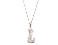 Girocollo con ciondolo Lettera L in oro bianco 18kt con pavè di brillanti