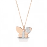 Catenina con ciondolo farfalla Melissa Jewels in oro rosa 18kt e pavè diamanti incastonati nel cuore, realizzato in oro bianco 18kt. Si prega di selezionare la preferenza del colore della catenina (oro bianco oppure oro rosa) nel menù a tendina, sopra al pulsante "Aggiungi al carrello". Se si desidera la personalizzazione gratuita del ciondolo (esclusivamente realizzata sul retro), si prega di comunicare il nome da incidere nel campo "Richieste? Personalizzazioni?" presente nel carrello d'acquisto. Gioiello Made in Italy accompagnato da garanzia e confezione regalo originale Melissa Jewels!