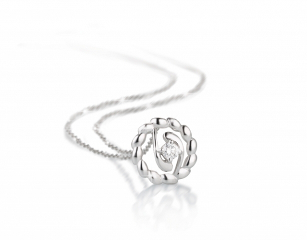 Catenina con pendente VERA modello Chicco di Riso in oro bianco 18kt e Diamante.