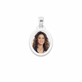 Medaglia foto a colori ovale e cornice piatta in argento 925%, il ciondolo è realizzato dalla "Medaglia Foto" azienda leader nella produzione di medaglie e fotomedaglie personalizzate tramite fotoincisione laser, per una resa incredibile nel tempo.