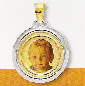 Medaglia foto personalizzabile mod. RV/colore oro giallo e bianco 18kt