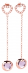 Orecchini pendenti in bronzo bagnato in oro rosa 18kt con pietra ametista e zirconi