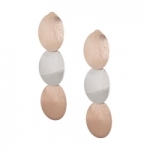 Orecchini BOCCADAMO pendenti in bronzo composti da due ovali placcati oro rosa dalla superficie graffiata, alternati ad ovale rodiato dalla superficie liscia. Lunghezza cm 8,5.