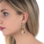 Orecchini BOCCADAMO Dea in bronzo placcato oro giallo dal perno a farfalla, con pendenti a grappolo dal decoro di ispirazione etrusca e cristalli Swarovski. Lunghezza cm 6,5.