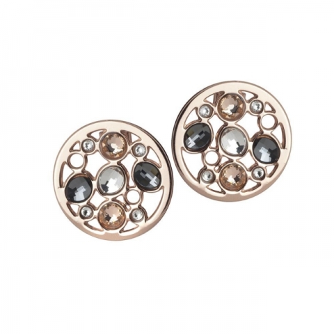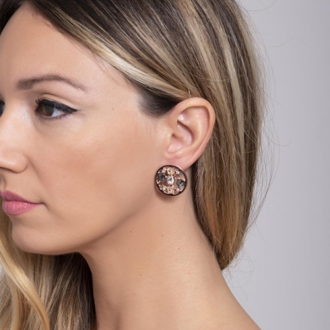 Orecchini BOCCADAMO a lobo in bronzo placcato oro rosa (diametro cm 2,5) con decoro di cristalli Swarivski crystal, peach e silver night.