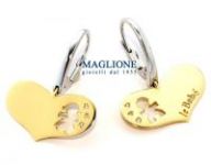 Orecchini in oro bianco 18kt e ciondoli a cuore, agganciati e quindi movibili, in oro giallo 18kt con intagliata la sagoma del bimbo e della bimba ed incastonati 6 diamanti taglio brillante su di un lato, ed il logo LeBebé sull'altro. E' possibile richiedere l'incisione gratuita sul cuore fino a 2 nomi che però non dovranno superare i 7 caratteri ognuno. LeBebè è un elegante monile pensato per le donne e le mamme, è un gioiello che rappresenta simbolicamente il figlio da avere sempre con sè. Accompagnato dalla sua confezione regalo originale LeBebè!