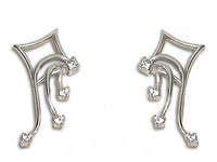 Particolari orecchini fantasia in oro bianco 18kt, su ognuno dei quali troviamo incastonati 6 diamanti sintentici cubic zirconia taglio brillante. La chiusura è del tipo a pressione, detta anche a "farfallina". Gioiello Made in Italy con confezione regalo inclusa.