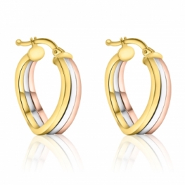 Orecchini a cerchio 3 fili in oro giallo, bianco e rosa 18kt