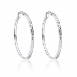 Gli orecchini a cerchio slim in oro bianco 18kt faccettato hanno un diametro di 3,30 cm e una larghezza di 0,20 cm