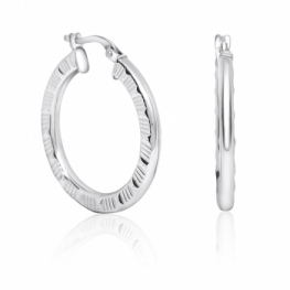 Gli orecchini a cerchio rigati in oro bianco 18kt hanno un diametro di 2,70 cm e una larghezza di 0,20 cm
