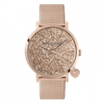 Orologio Boccadamo serie Mya con quadrante circolare in glitter rosato, cassa rosata, charm laterale rosato a forma di cuore e cinturino in acciaio rosato maglia Milano. Scheda tecnica: - Cassa: metallo. - Larghezza cinturino: 18 mm in acciaio. - Lunghezza cinturino: 23 cm. - Diametro cassa: 37 mm. - Vetro: minerale. - Movimento: al quarzo Miyota Citizen. - Impermeabile all'acqua. Orologio Boccadamo completo di astuccio, libretto di istruzioni e certificato di garanzia valida 2 anni presso qualsiasi centro assistenza autorizzato.