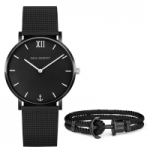 Orologio e Bracciale Paul Hewitt Set Perfect Match Sailor Line quadrante Black Sunray Acciaio Inox e PHREP IP Nero