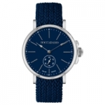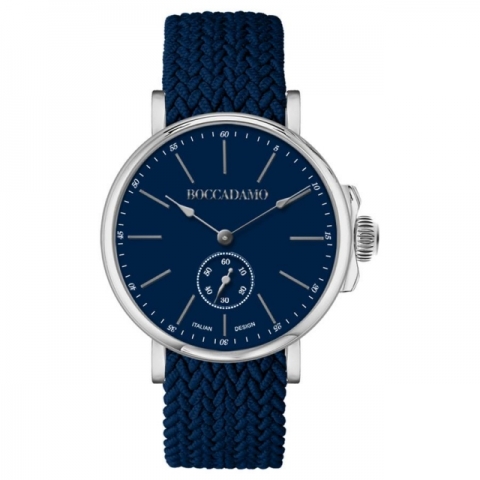 Orologio Boccadamo serie Prince con quadrante circolare blu, cassa silver e cinturino in nylon Perlon blu navy.