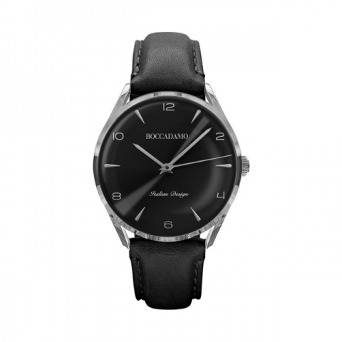 Orologio Boccadamo Uomo da polso vintage con quadrante nero e cinturino in vera pelle nera.