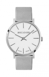 Orologio da polso con quadrante circolare bianco, cassa silver e cinturino in acciaio maglia mesh.